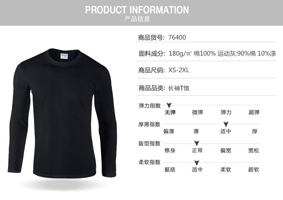 180g成人圆领长袖T恤
