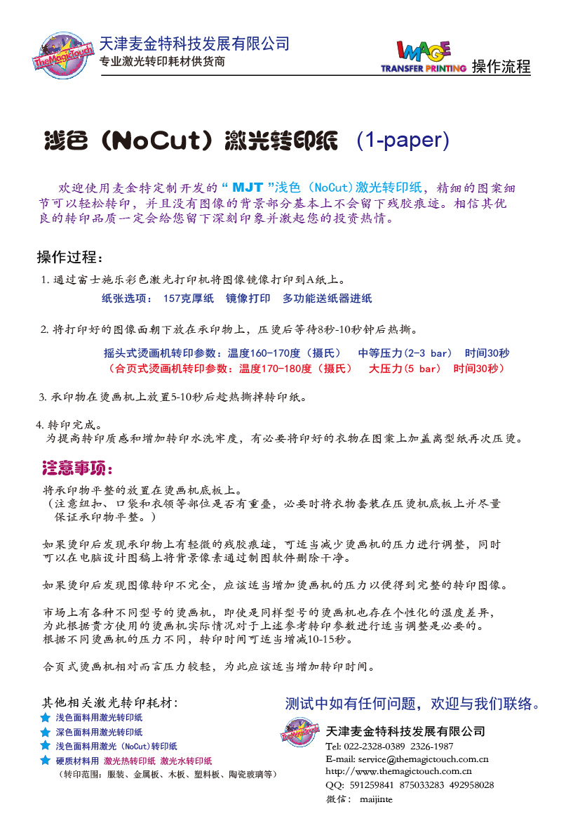 浅色无痕激光转印纸的特点: