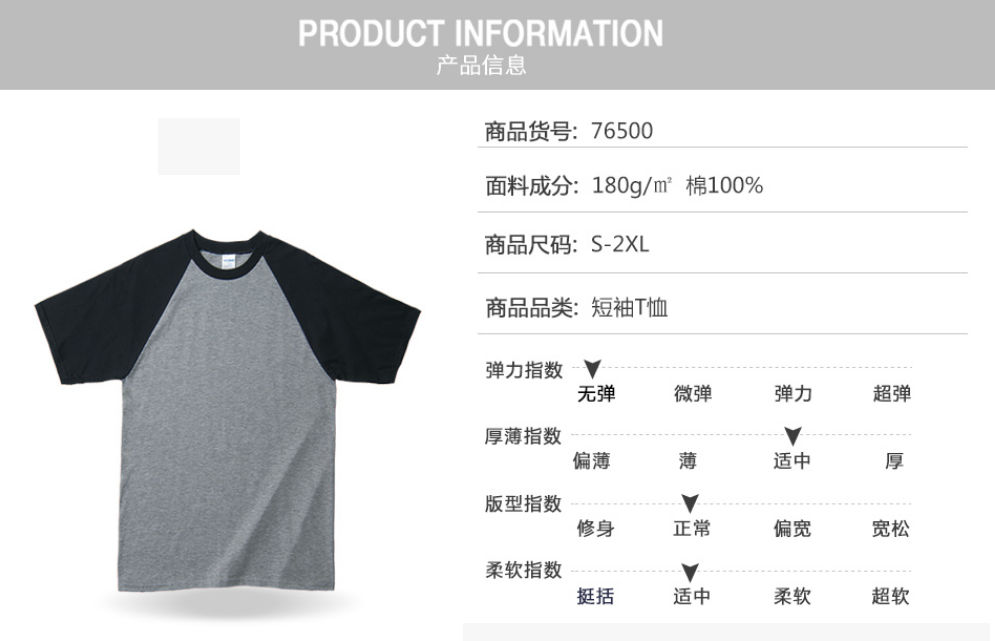 180g插肩成人圆领T恤