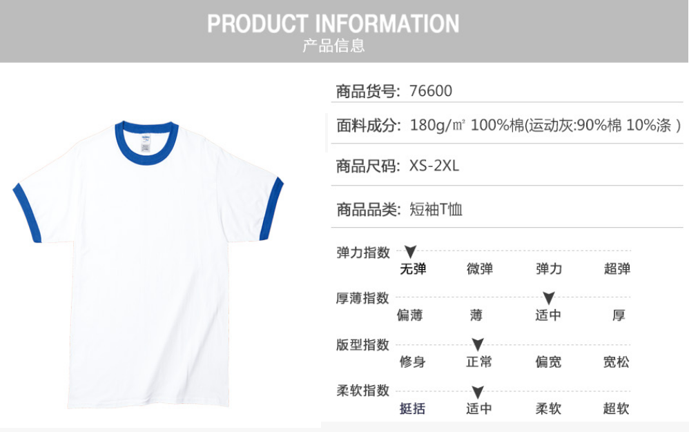 180g撞色领成人圆领短袖