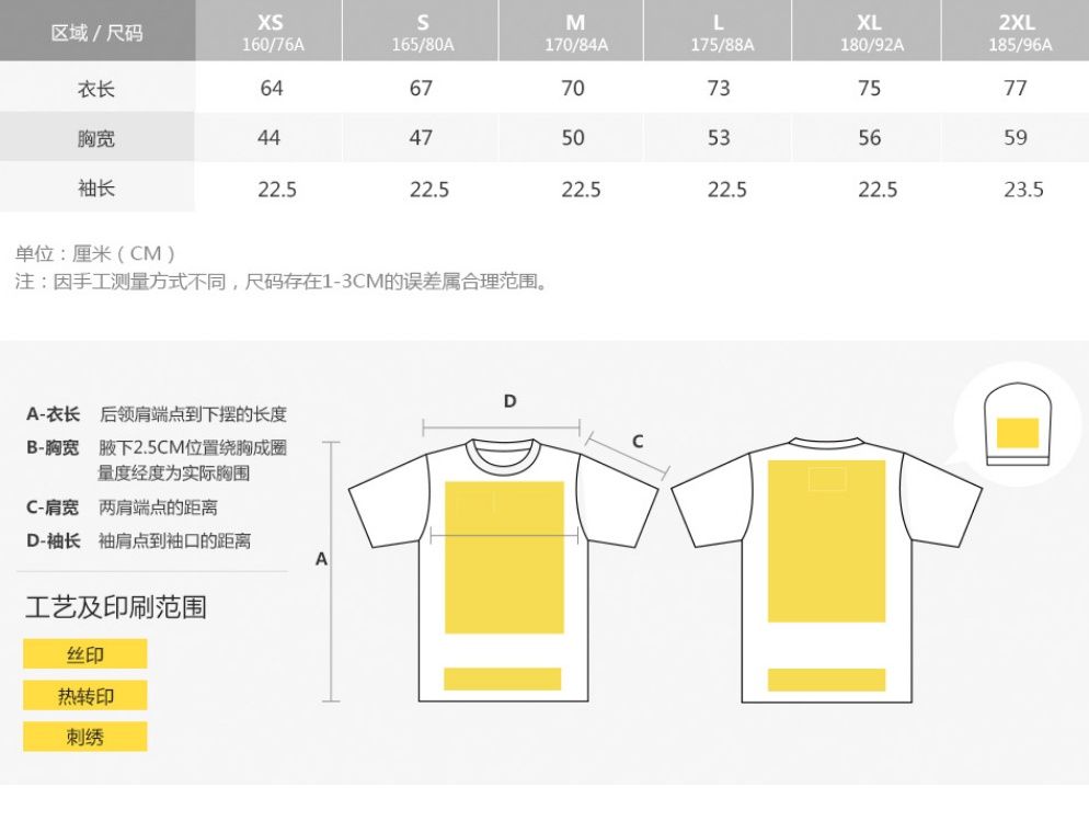 150g成人V领短袖T恤